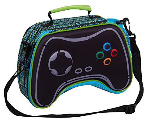 Design esclusivo: queste borse hanno un design esclusivo e possono essere trovate solo nel nostro negozio. Abbiamo lavorato in collaborazione con il principale specialista di design per progettare questa sorprendente borsa per il pranzo. Questo design presenta un'immagine 3D di un controller di gioco sul davanti completo di pulsanti 3D. Abbiamo una robusta maniglia imbottita per il trasporto e anche una tracolla staccabile che rende il viaggio a scuola a mani libere.