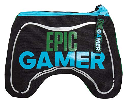 Design forte: astuccio ufficiale Ultimate Kids. Ogni custodia è realizzata in tela resistente e leggera per garantire che duri oltre l'anno scolastico. Resistente e abbastanza forte per resistere all'uso quotidiano intenso. Il design è a forma di controller di gioco e ha due scomparti con apertura a zip con tag "Epic Gamer" sulla cerniera per facilitare l'apertura e la chiusura.