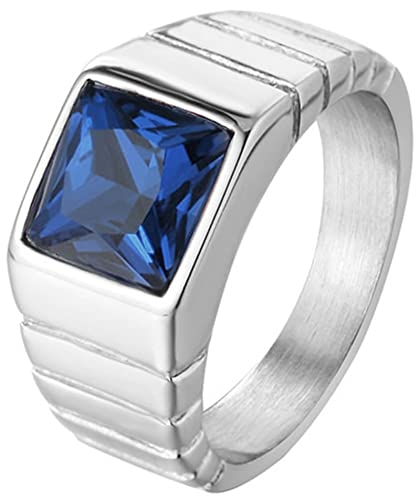 Epinki Anello Acciaio Inossidabile per Uomo Pietra a Strisce Zirconi Cubici Argento con Pietra Blu Cool Gotico Taglia 15