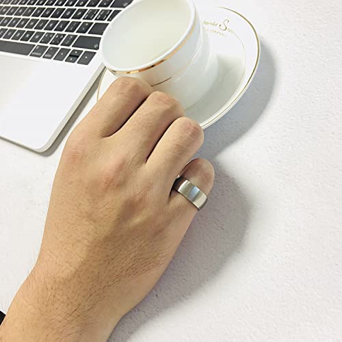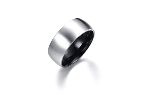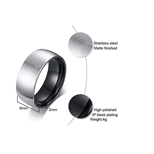 Epinki Anello per Lui, Anello 8MM Spazzolato Argento Nero per Uomo Acciaio Inossidabile Anelli di Fidanzamento Misura 14
