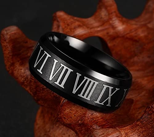 Epinki FEDI Nuziali Acciaio Inox, Anello 8MM Numeri Romani Spazzolati Nero per Uomo Anello Promessa di Matrimonio Misura 20