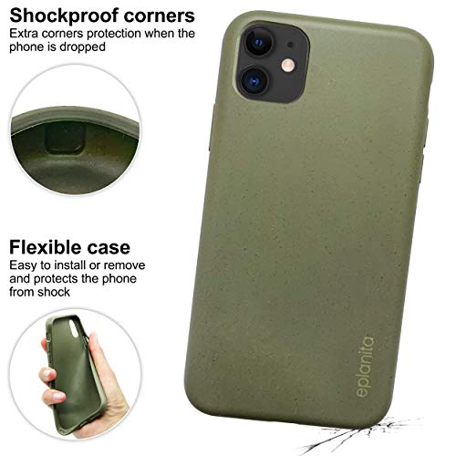 Eplanita Eco Cover iPhone 11, Biodegradabile Fibra Piante e TPU Morbido, Custodia Protegge dalle Cadute, Ecologico e Zero Rifiuti (iPhone 11, Khaki)