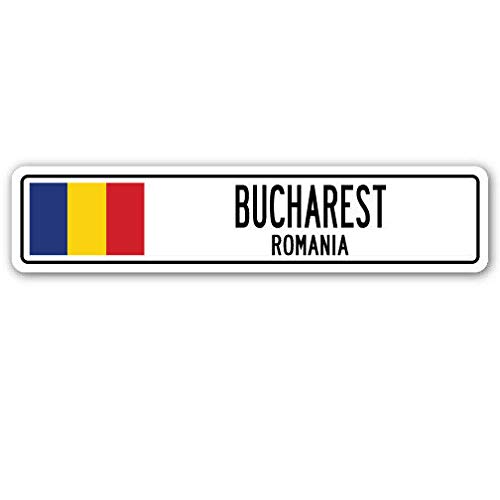 EpochSign Bucarest Romania Cartello Stradale in Alluminio Bandiera rumena Città Paese Strada Gif Metallo Strada Cartello Stradale 10,2 x 40,6 cm