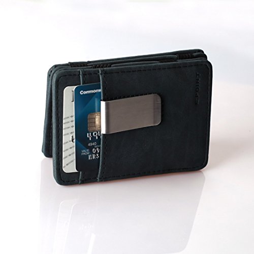 Epoint ECM07A04 Steel Blue Portafoglio Magia solido e di credito/ID caso Fidanzato Presents Mens di cuoio della carta del raccoglitore del supporto Gioca Portatori dell'Anello By