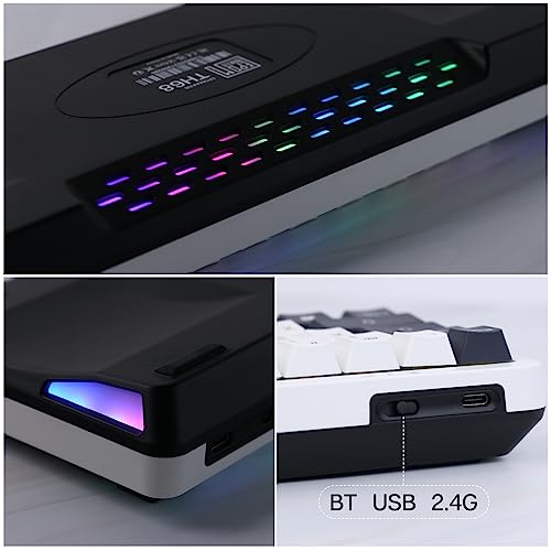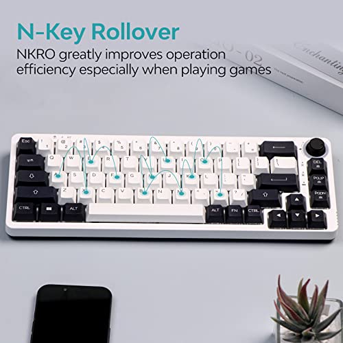 【Bluetooth 5.0/2.4GHz/Type-C Wired Triple Modes Available】EPOMAKER Theory TH68 65% tastiera meccanica dispone di connessione multi-mode per fornire il libero passaggio tra diversi dispositivi. Bluetooth 5.0 e 2.4GHz offrono una trasmissione veloce e stabile senza latenza, mentre il cavo Type-C incluso fornisce una solida connessione come backup quando la batteria è fuori uso. È compatibile con il sistema Mac/Win/Android. È N-key rollover in tutte le modalità, senza limiti come previsto.