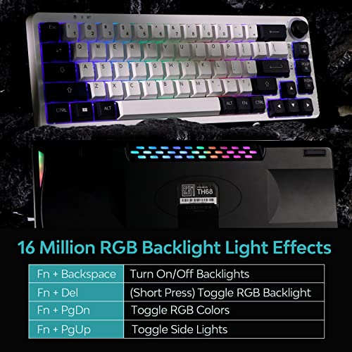 【Bottom Mesh Structure RGB Light & Side RGB Light】La retroilluminazione RGB è sempre considerata uno degli elementi più importanti per le tastiere meccaniche, quindi Theory TH68 rende più di una semplice retroilluminazione RGB. Dispone di una struttura a rete nella parte inferiore del kit e di un design luminoso RGB laterale. La tastiera è completamente circondata da incredibili effetti RGB