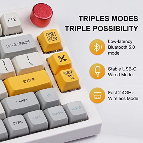 Epomaker, Theory TH80 Pro, Tastiera meccanica da gioco 75% sostituibile a caldo, 2,4 GHz/Bluetooth 5.0/cablata con illuminazione RGB, tasti MDA PBT, per Mac/Win, Gateron pro blu