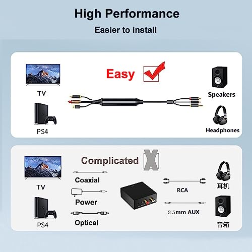 Eppfun AV300 DAC 192kHz Convertitore Audio Digitale Analogico, Digitali Toslink/Ottici & Coaxial ad Analogico Stereo RCA L/Re Jack 3.5mm per Xbox PS3/PS4 PS5 DVD