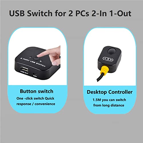 Eppfun USB 2.0 Switch Selector, USB KVM Switch per 2 PCs, Commutatore USB 2-in-1 out, con telecomando, per Mouse, Tastiera, Scanner, Stampante
