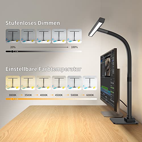EppieBasic Lampada da scrivania a LED con base, Lampada da scrivania per architetto per ufficio in casa Oscuramento+6 modalità colore oscuramento auto Lampada monitor computer da tavolo a collo d'oca
