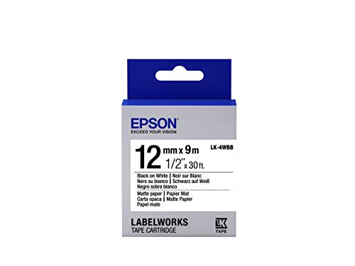 Epson LK-4WBB - Carta opaca - Nero su Bianco - 12 mm x 9 m. Colore etichetta: nero su bianco.