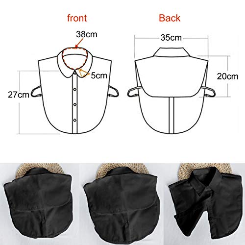 EQLEF Colletto Staccabile Camicia Mezza Manica Staccabile da Donna in Cotone Nero (Nero)