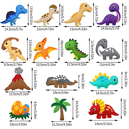 ☀ Super laboratorio creativo per bambini: la confezione include 14 paia di feltri, 4 aghi da cucire in plastica, 8 fili da ricamo, 1 set di cotone, 1 manuale di istruzioni. Ogni dimensione del dinosauro finito è di circa 5,5 x 4,3 pollici.