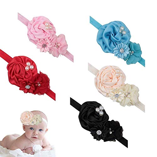 EQLEF Fasce di Bella neonata con Chiffon del Petalo del Fiore (Confezione da 5 Colore Casuale)
