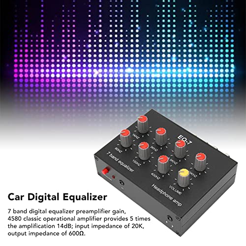 Equalizzatore Audio a 7 Bande, Interfaccia 5,5x2,1 Interfaccia di Ingresso da 3,5 Mm Supporta Spina a 4 Poli, Preamplificatore Equalizzatore Digitale a 7 Bande per Auto