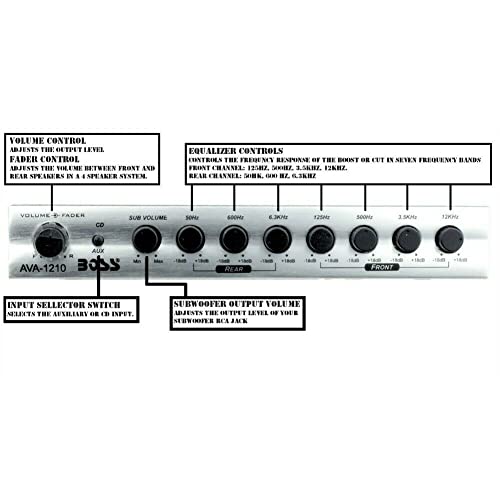 1 equalizzatore compatibile con BOSS AUDIO SYSTEMS AVA1210 AVA 1210 a 2 vie processore di segnale attivo crossover a 7 bande ultra slim, 1 pezzo
