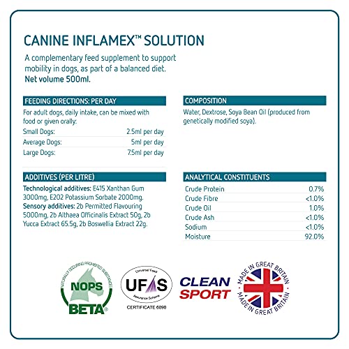 Equine America Soluzione Canine Inflamex con Aqualox | Integratori Premium Pronti all'Uso per Cani Supporto per articolazioni e Mobilità | 500 ml