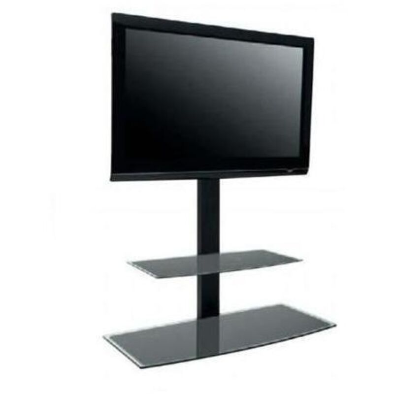 Porta TV per schermo ERARD 035061.Studio è una colonna porta schermo con ripiano periferico, ideale per habitat giovani o 2a e 3a installazione.Disponibile in 2 larghezze di base, Studio ha una testa girevole e bloccabile. Periferiche in vetro temperato serigrafato, 6mm - Base in vetro temperato appoggiata su piedini in metallo. Colonna: in metallo. Porta schermo: da 32 a 50 pollici. Vernice epossidica a grana nera: sì. Porta perimetrale: in vetro temperato serigrafato da 6 mm. Colore nero. Tipo: fisso. Capacità di carico massima: 40 kg. Standard VESA: 100x100,200x 100,600x400 mm.