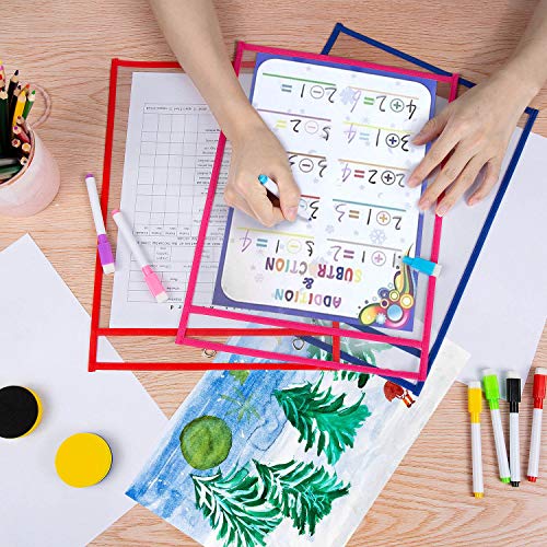 Dry Erase Pocket, GuKKK 20 Pcs Resuable Tasche Pulite Forniture di Cartoleria, 2 Gomma e 2 Occhielli in Metallo, per Office School, Scuola, Casa, o Lavoro(35.5×25.5 cm)