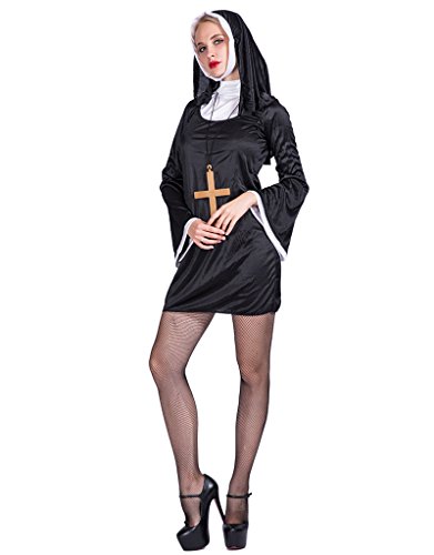 EraSpooky Costume da Suora ImpertinenteVicari Religiosi Femminili Vestito Nero da Abito Fantasia