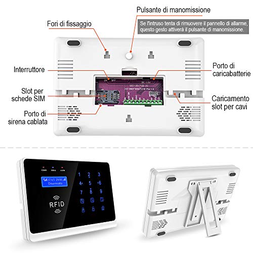 ERAY WM3FX WiFi + GSM / 3G Sistema di Allarme Domestico Wireless, Antifurto Kit con Pannello di Controllo, APP Gratuita per iOS/Android, Carte RFID, SMS e Chiamata, Voce e Schermo LCD in Italiano