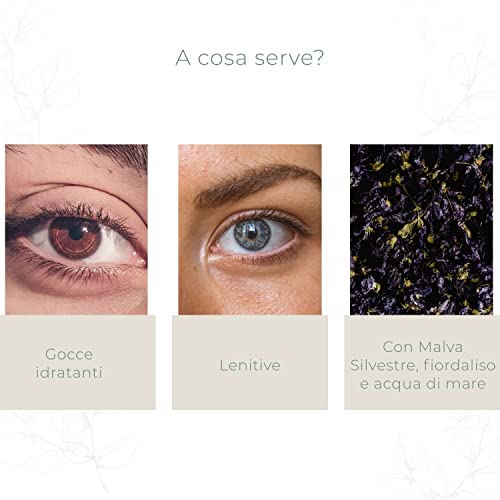 Gocce oculari idratanti e lenitive con Malva Silvestre, Fiordaliso e acqua di mare.