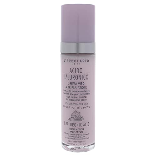 L'Erbolario, Crema Viso Acido Ialuronico per Pelli Normali e Secche, Trattamento Anti-Age a Tripla Azione, 50 ml