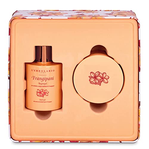 L'Erbolario - Segreti di Bellezza FRANGIPANI DUO - Elegante Scatola Regalo in Latta fiorita con Bagnogel 300 ml e Crema Profumata per il Corpo 200 ml