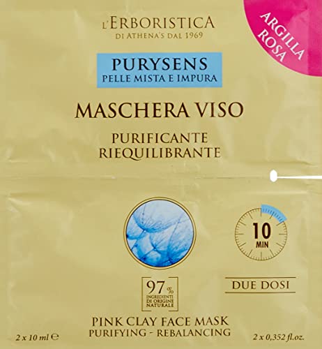 L'Erboristica Athena's - Purysens Maschera Viso Purificante - Skincare con Argilla Rosa e Prebiotico - Skincare Kit Viso Purificante - 2 Dosi x 10 ml