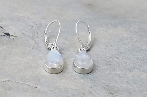 Graziosi orecchini che si concentrano sulla pietra di luna arcobaleno con la semplice montatura in argento.