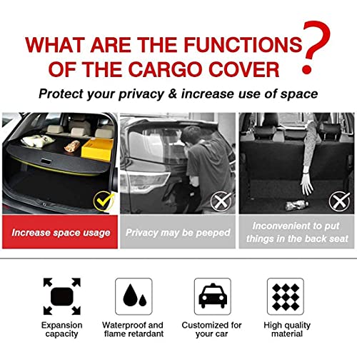☞ ASSISTENTE DI SPAZIO: la copertura del bagagliaio può separare efficacemente il bagagliaio e rendere il bagagliaio spazioso e ordinato. Può anche nascondere i tuoi oggetti di valore e darti tranquillità. La copertura del bagagliaio offre ulteriore comfort e un aspetto di prima classe alla tua auto.