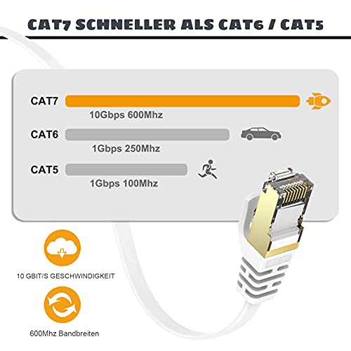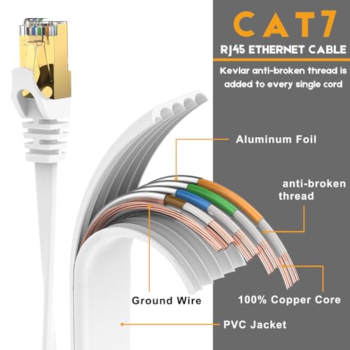 Ercielook Cavo Ethernet 7M - Cavo LAN schermato professionale Cat 7 con connettore RJ45, cavo di rete piatto ad alta velocità 10 Gbps per PS5/4 TV Switch Laptop