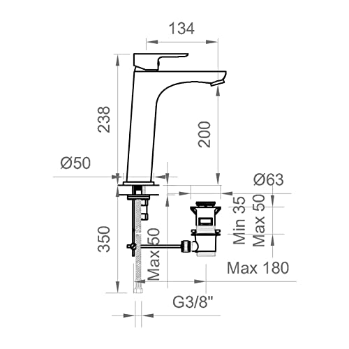 ERCOS Miscelatore Lavabo Alto Con Bocca da 134 MM, Colore Cromato, Miscelatore Bagno o Cucina Da 238X134 MM, Scarico Compreso