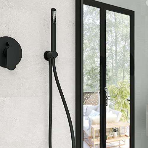 ERCOS Kit Supporto Doccia Fisso In Ottone Nero Opaco Con Flessibile Antitorsione Da 1500 MM e Doccetta Acqua In Ottone Nero Opaco Da 203 MM. Presa D'acqua Integrata