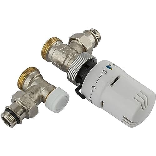 Ercos Kit Valvola E Detentore A Squadra Bianco Con Testa Termostatica Con Attacchi 1/2" e 3/4"
