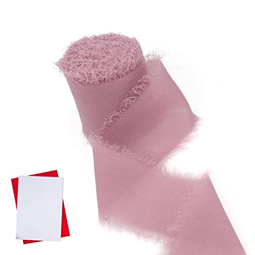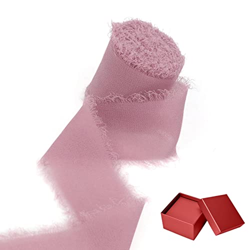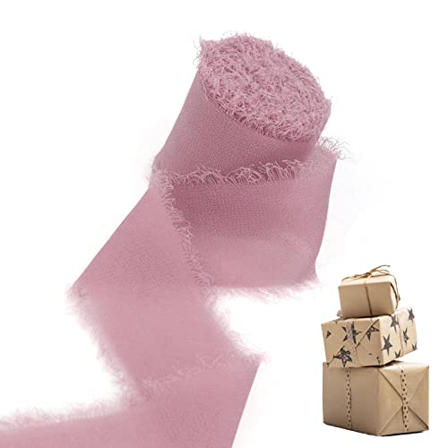 Ereqeip Nastro in chiffon - Nastro di San Valentino strappato a mano, nastro di seta fatto a mano per avvolgere, nastro in chiffon con frange foresta di salvia per inviti di nozze