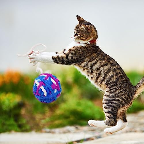 Ereqeip Palline giocattolo per gatti in filato di lana | Cat Toys Kitten Indoor Interactive Wool Yarn Cat Balls with Bell - Cat Ball Toys with Bell, Cat Pompon Fuzzy Balls Giocattoli interattivi