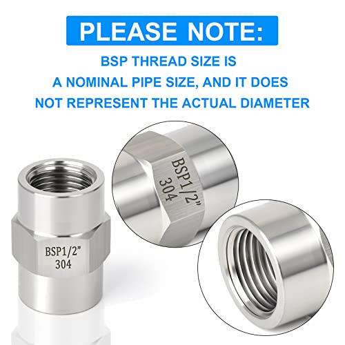 Dimensioni: 1/2" femmina bsp x 1/2" femmina bsp filettatura in acciaio inox forgiato connettore di accoppiamento esagonale.