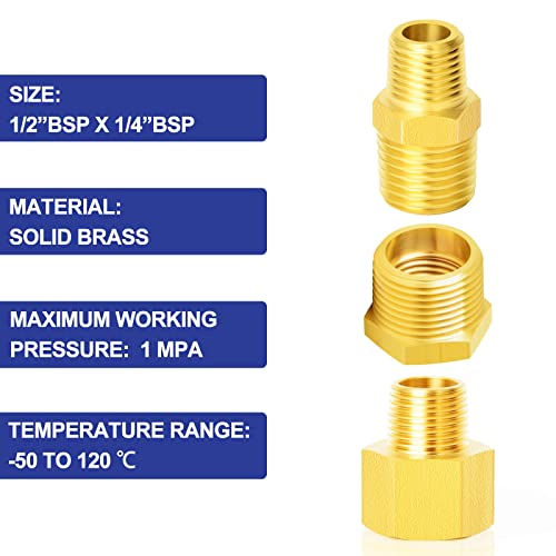 Adattatore riduttore: ottone massiccio premium con parete più spessa, più resistente dei raccordi per tubi in ferro e ferro zincato, tubo maschio BSP da 1/4" x tubo femmina BSP da 1/2".