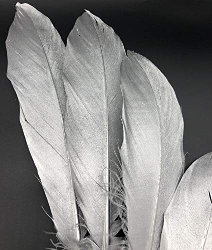 ERGEOB PANAX Piume D'Oca Reali con Lunghezza 15-22 cm - 50 Pezzi, Carnevale, Halloween, Artigianato, Handwerk, bricolage, Abbigliamento, Costumi, Decorazione Argento Pieno