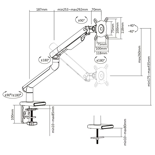 ✅ Uno schermo nello standard VESA può essere facilmente attaccato al supporto: 75x75, 100x100 mm