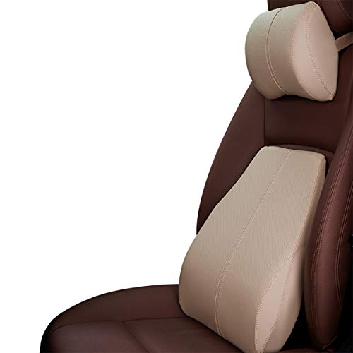 Ergocar Cuscino per Cervicale & Cuscino Lombare Copertina in Pelle PU Schiuma di Memoria Cuscino Per La Schiena per Sedia Ufficio Auto Casa (Beige, Cuscino per Cervicale + Cuscino Lombare)