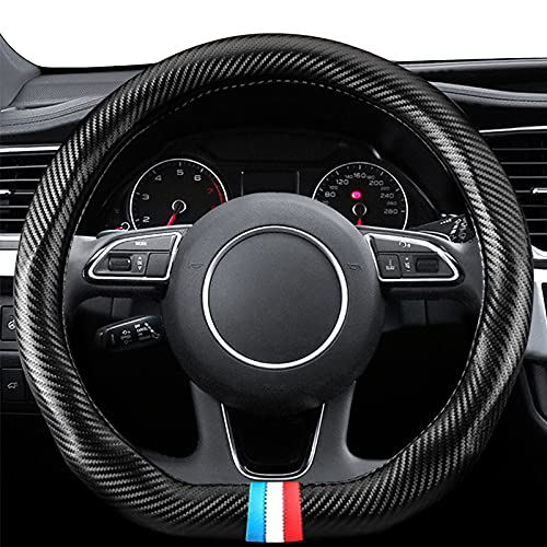 Ergocar Materiale in fibra di carbonio Coprivolante Antiscivolo Traspirante Stile Sportivo Accessori Auto Interno Copertura Volante per Forma D Coprivolante Diametro 15"(37.5-38cm)-Nero strisce