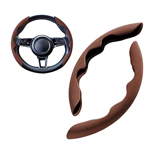 Ergocar Sport Coprivolante Forma D & Rotonda Universale Camoscio/Fibra di Carbonio Moda Coprivolante Segmentati per Auto Antiscivolo Traspirante 38 cm(15"), Marrone