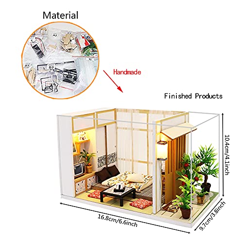 Erhumama - Casa delle bambole in miniatura giapponese per casa delle bambole in legno, kit di mobili fai da te per la casa delle bambole e le luci della casa del gatto regalo di compleanno per bambini