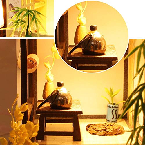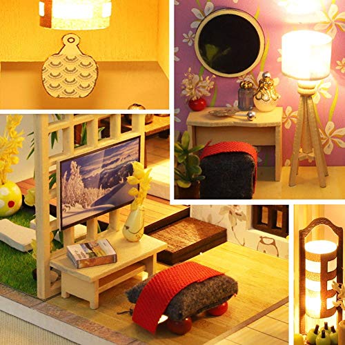 Erhumama Casa delle Bambole FAI DA TE Con Mobili LED Luce Copertura Polvere Kit Miniatura Giapponese Tatami Loft Room Assemblaggio In Legno Modello Edificio Puzzle Giocattolo Regalo Per Bambini