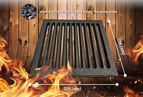 ERicambi, Griglia in Ghisa per Camini e Stufe a Legna e Focolari Pellet, Dimensioni: 23,5 x 23,5 (cm), Spessore 1 cm, Peso 2,7Kg per Caduta Cenere