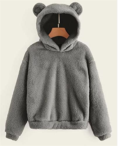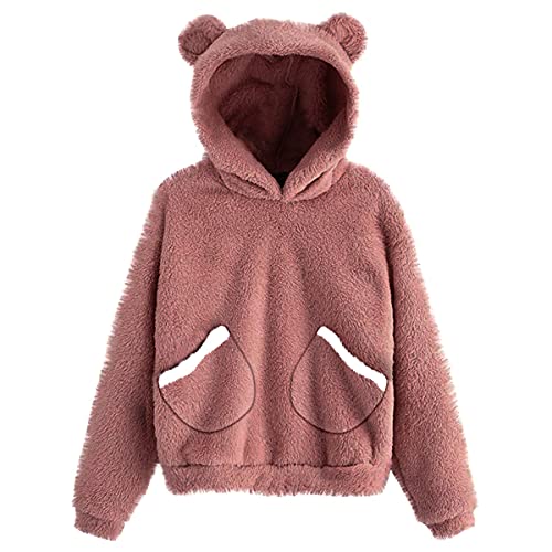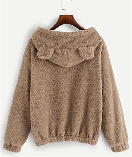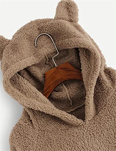 Erichman delle Donne Casuale Cute Teddy Bear A Maniche Lunghe in Pile Pullover con Cappuccio Soft Top Fuzzy Felpa in Pile (Coffee B,L,L)