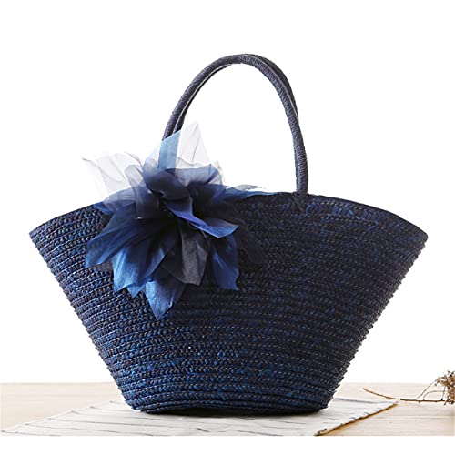 Erichman Delle donne di estate della borsa della spiaggia di erba spiaggia sacchetto tessuto della borsa di grandi dimensioni borsa di paglia con manico in pelle (03 dark blue,One Size)