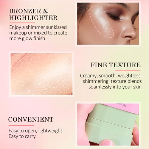 Erinde Bronzer Stick, Shimmer Cream Bronzer per viso, Stick illuminante contorno, Stick abbronzante per il corpo, Trucco glitterato, Cremoso e sfumabile, Illuminante, Leggero, 05 a lume di candela